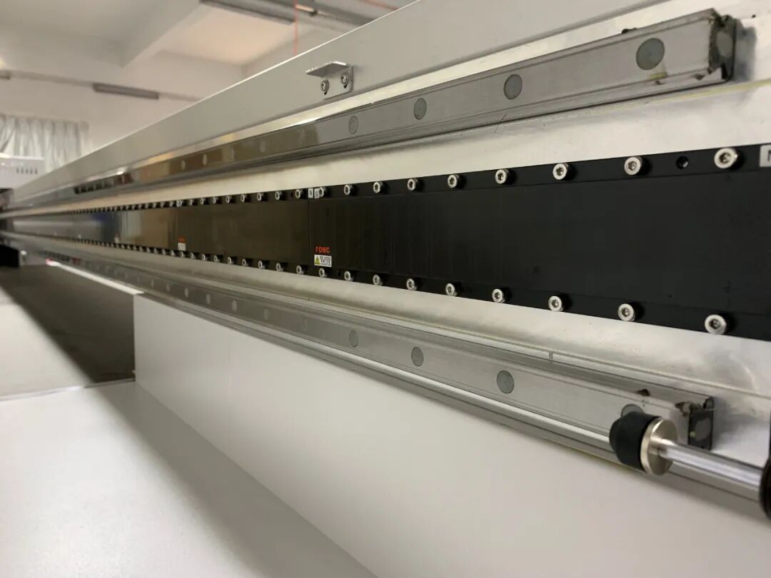 ?導軌兩側安裝液壓緩沖器,在高速打印過程中,守護車頭。