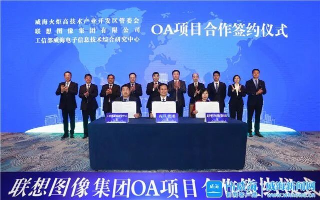 4月10日,威海高新區管委、工信部威海電子信息技術綜合科研中心、聯想圖像集團三方一起簽約,聯想激光打印機項目正式落戶高新區。聯想圖像集團董事長俞兵,聯想圖像集團董事盧悅,省工業和信息化廳二級巡視員史沛釗,工信部威海電子信息技術綜合科研中心專家阮熙侖,市領導張海波、閆劍波、張偉出席簽約儀式。張海波致辭,閆劍波主持。
