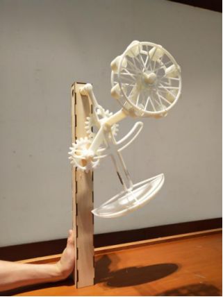 設計靈感源自于仿生物體,利用生物四肢的支撐與行走原理,結合環保與綠色概念,創造出節能且更順應自然的移動方式,不僅帶給世人全新的感受與反思,還得到了世界各大媒介的報道,誘發了全世界的模仿并利用此種原理持續研發出許多新的應用,本件作品經過建模、裝配、渲染,最后以3D打印成型的樣件進行裝配。