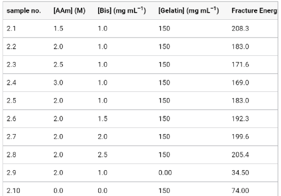 表2.用于機械性能和形狀記憶性能測試的水凝膠油墨。